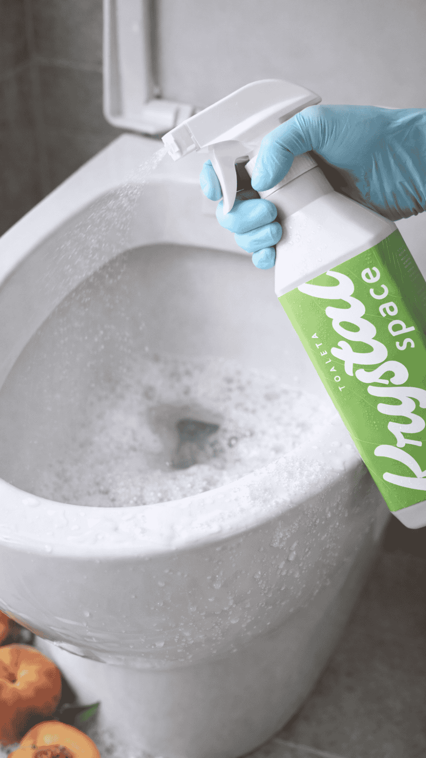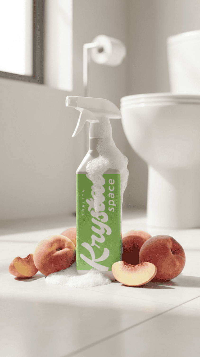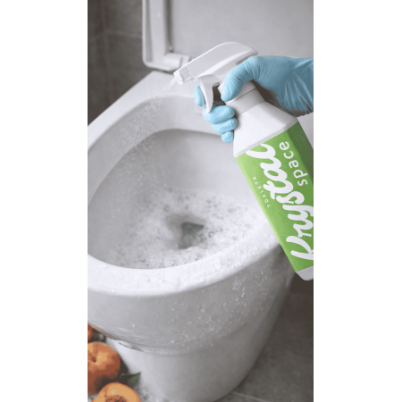 Czysta toaleta bez chloru, która pachnie dojrzałą brzoskwinią? Mamy na to sposób! KrystalSpace do toalet o zapachu Peach, Please usuwa kamień, osady i nieprzyjemne zapachy. Bez duszącej chemii i bez szorowania.